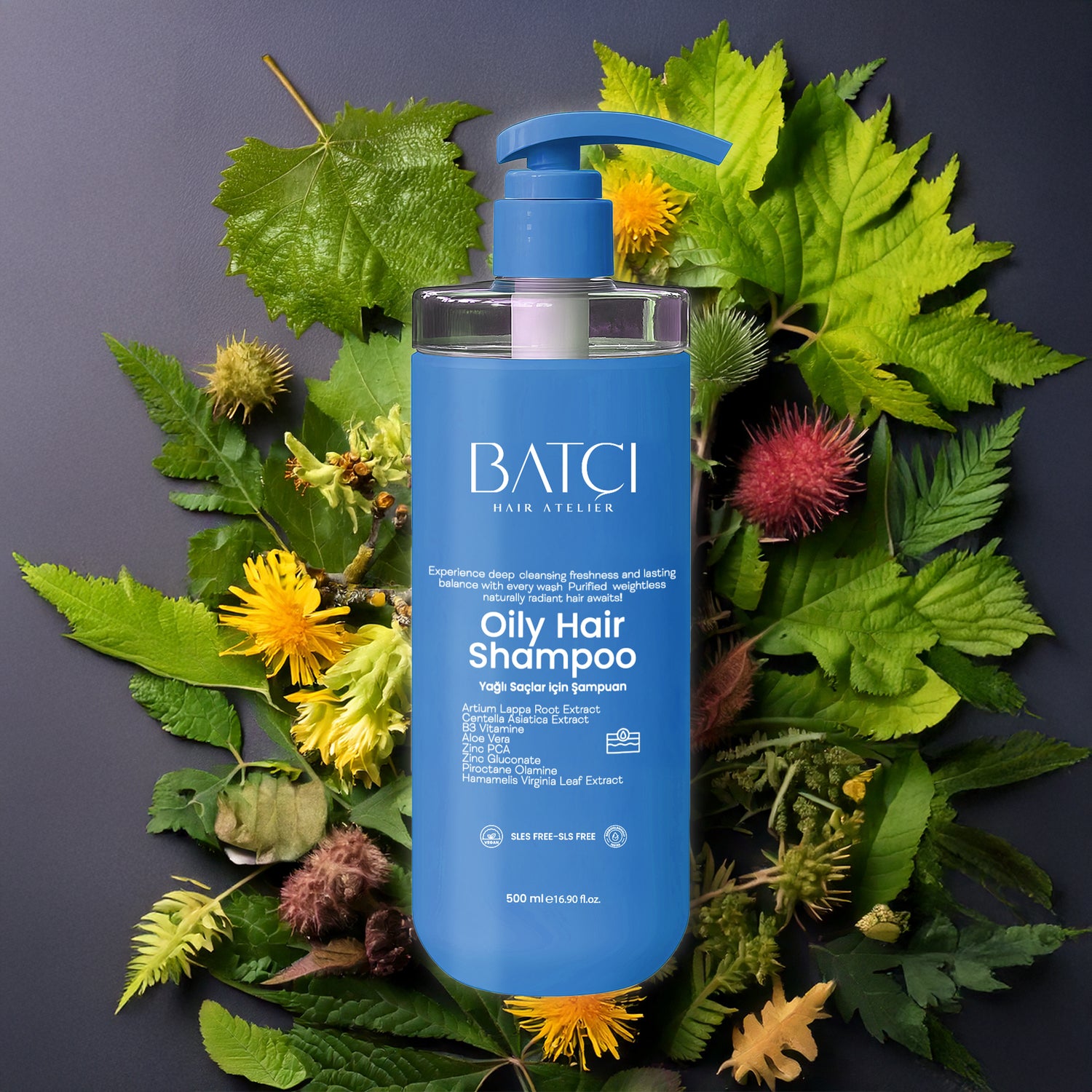 Discover BATCI's oil-balancing shampoo. The special formula balances excess oil on your scalp, leaving your hair looking long-lasting, vibrant, and voluminous.